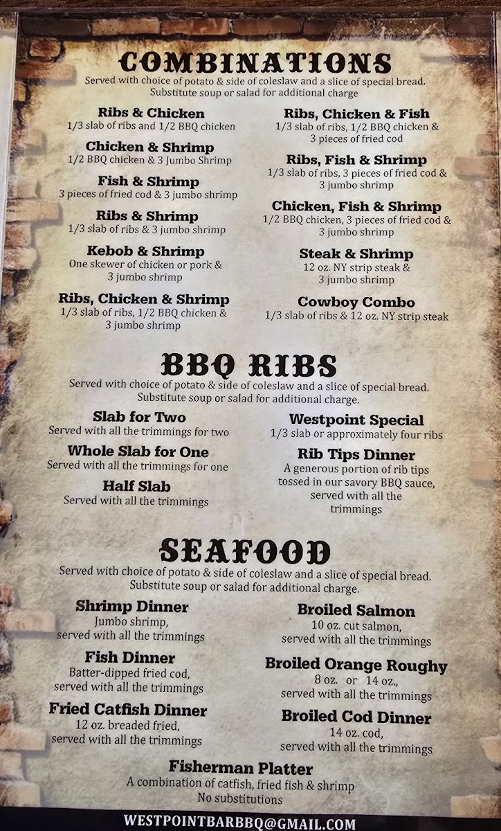 Though some diners have expressed mixed reviews on certain dishes, the overall warmth of service and hearty portions make Westpoint Bbq a worthwhile stop for barbecue lovers and food adventurers alike!